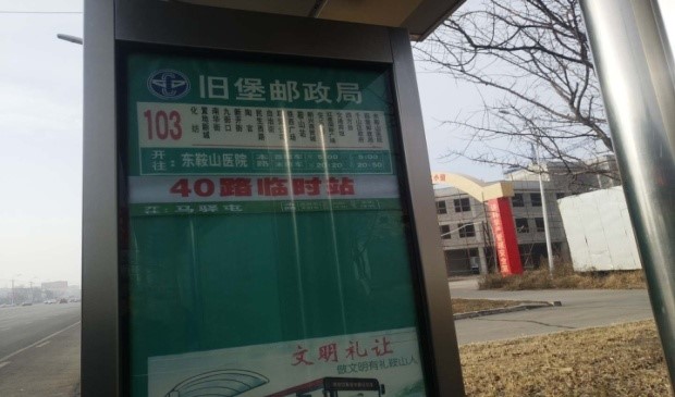 40線站序:明達(dá)世紀(jì)花園 – 鞍山人才市場-米蘭小區(qū) –匯園大道 – 莘英路-長興街 - 鐵東區(qū)法院- 新營廣場 – 解放東路- 園林大道- 中華南路 - 榮譽(yù)街 - 新華園 - 交通賓館 - 千山區(qū)政府 – 舊堡郵政局(臨時站)-舊堡 - 千山區(qū)委--馬驛屯